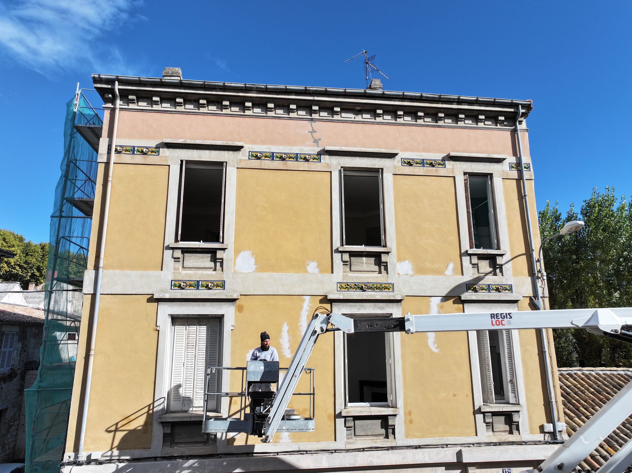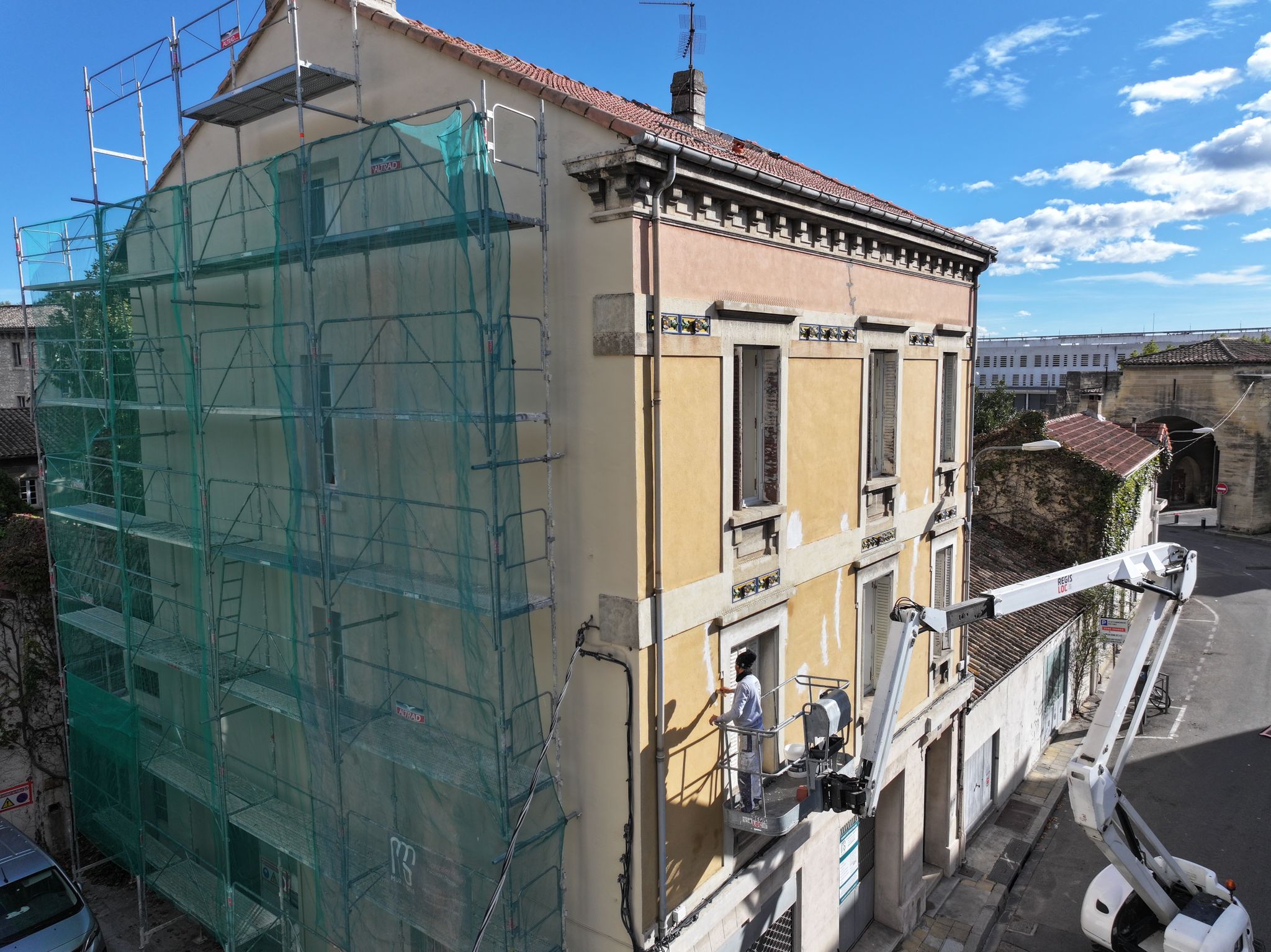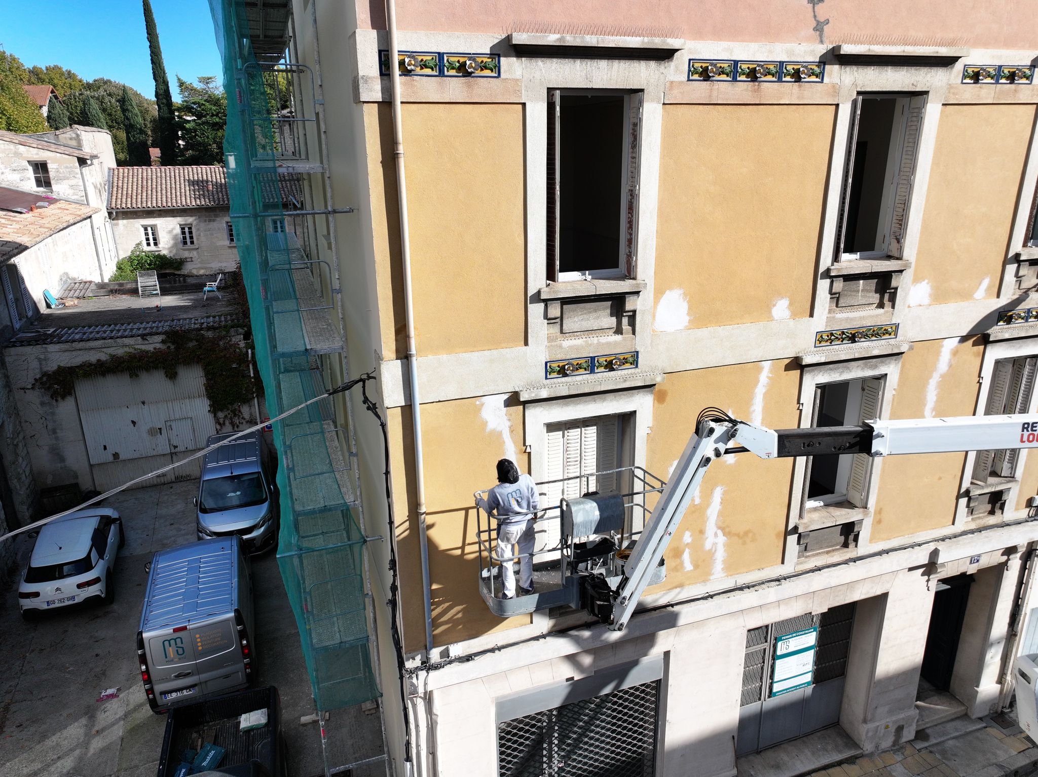 Dans le cadre de ce projet situé intra-muros à Avignon, Murinsitu a réalisé un ravalement complet de façade ainsi que la remise en peinture des volets, avec une approche respectueuse du bâti ancien et des contraintes propres au centre historique.
