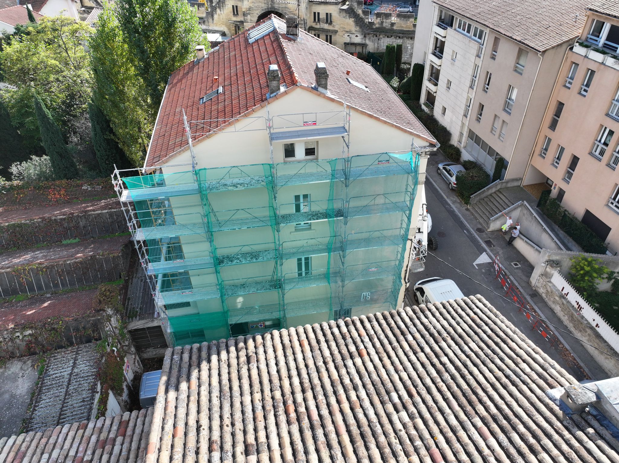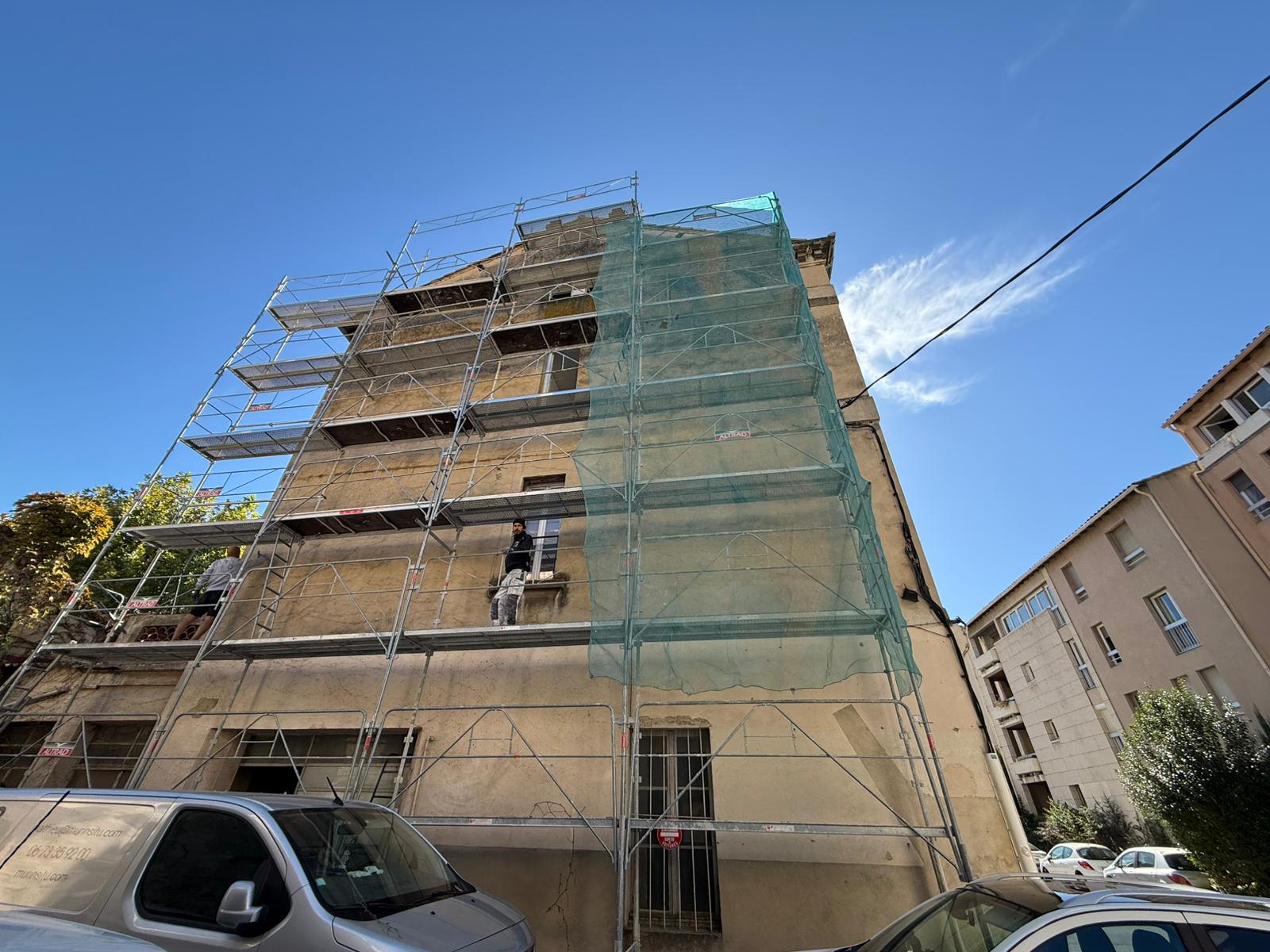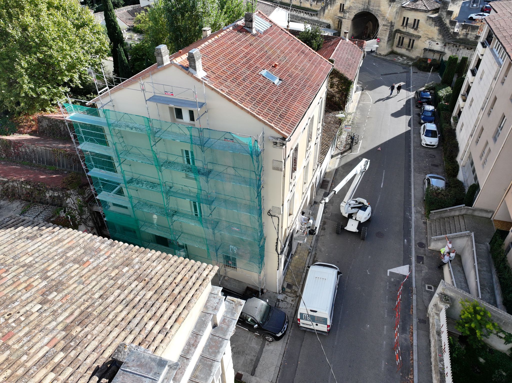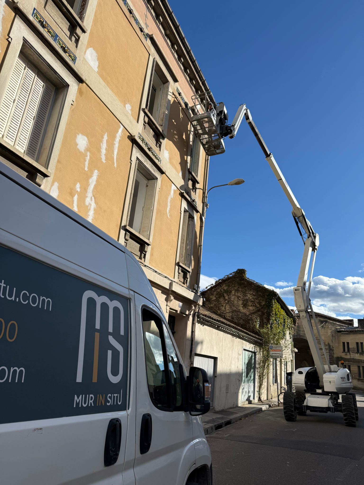 Dans le cadre de ce projet situé intra-muros à Avignon, Murinsitu a réalisé un ravalement complet de façade ainsi que la remise en peinture des volets, avec une approche respectueuse du bâti ancien et des contraintes propres au centre historique.