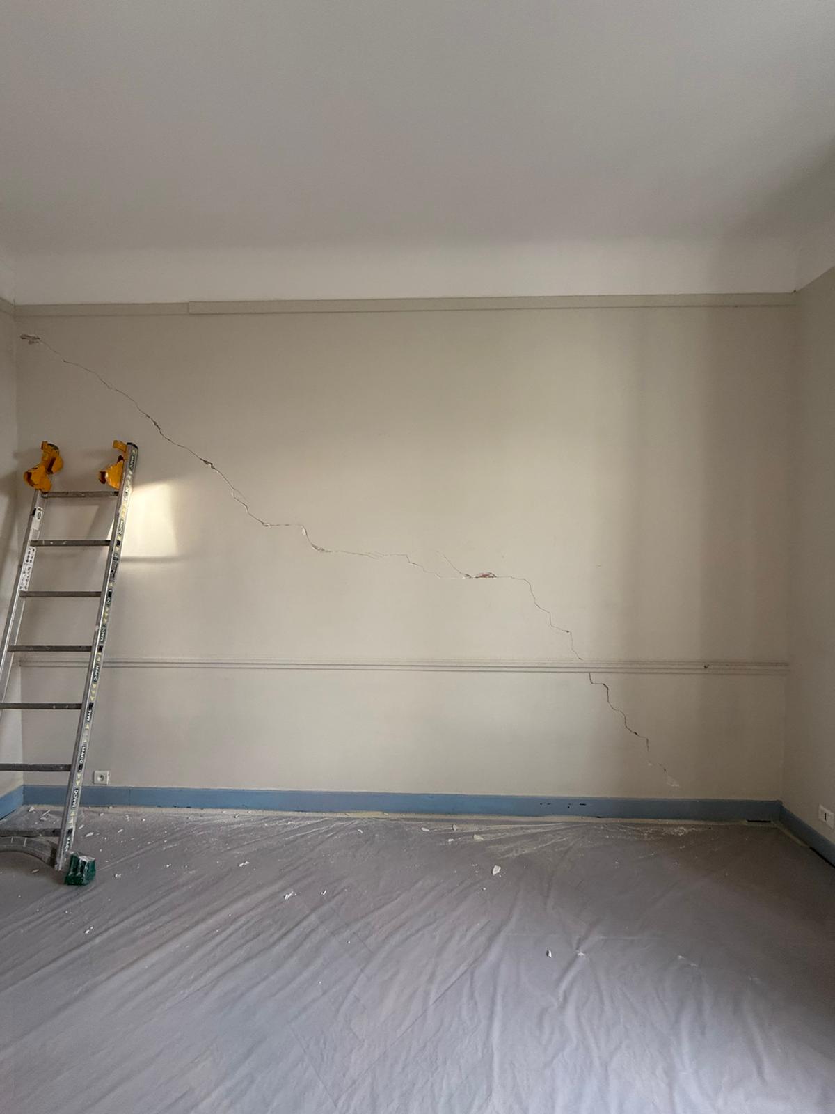 Cette prestation a inclus la réparation et le traitement des fissures, suivis d’une mise en peinture soignée, permettant de retrouver des surfaces saines, homogènes et durables.